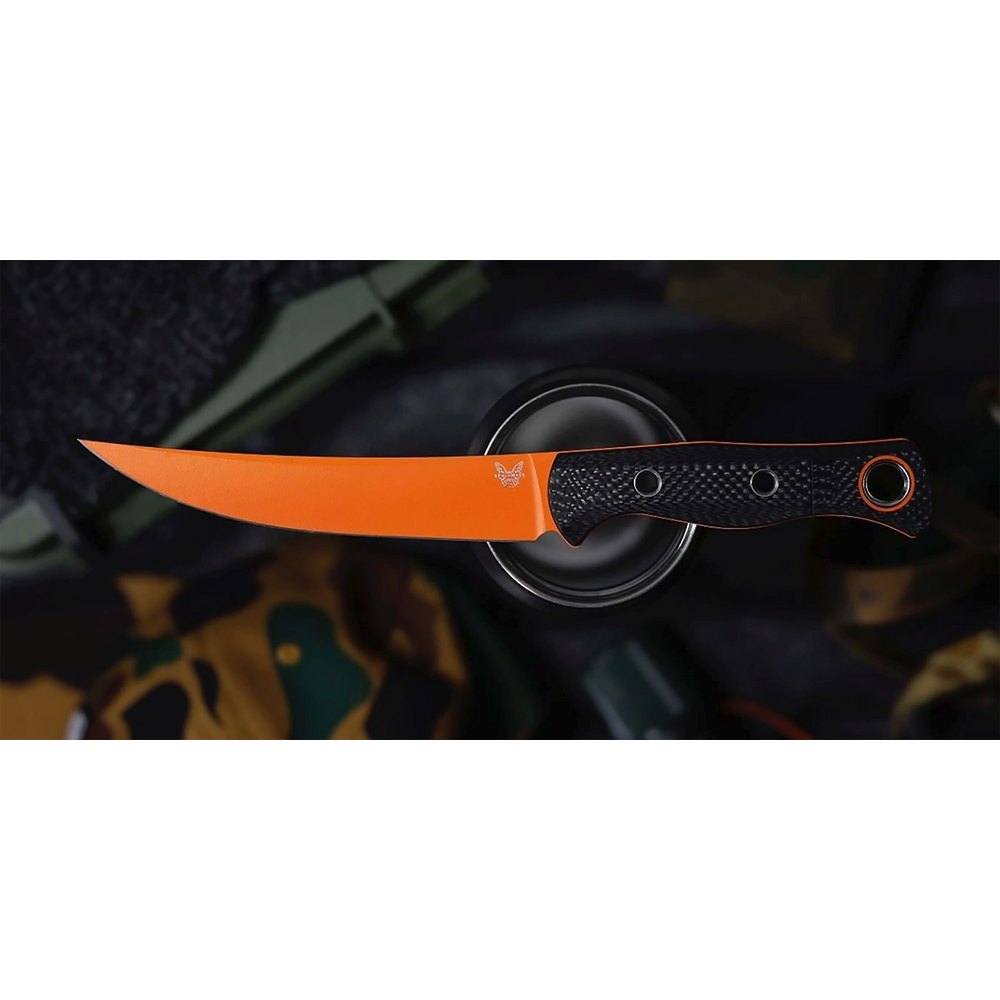 The 15500OR-2 Meatcrafter is a next-level blade for next-level hunters, and makes preparation easier than it's ever been in stylish yet functional form. Benchmade's Meatcrafter is a hybrid hunting fixed blade with a fine, smooth edge to trim, debone, or slice your preferred cuts. This premium version of the Meatcrafter boasts hi-vis orange Cerakote® for increased visibility in the field. Featuring the signature 14° SelectEdge™ push-cut performance, the Meatcrafter® excels from the ridgeline to the cutting board, empowering you to craft your favorite cuts no matter where you are. Put your best cut forward and bring precision to every plate. A superb gift for the discerning hunter.